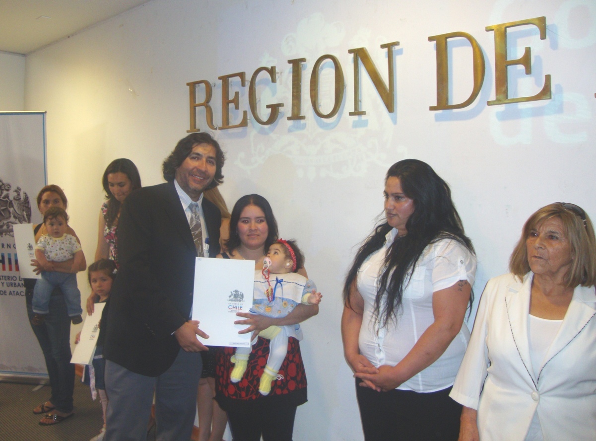 Minvu entrega 207 subsidios habitacionales en Atacama En una emotiva ceremonia, efectuada en el salón José Joaquín Vallejos de la capital regional, el Ministerio de Vivienda y Urbanismo hizo entrega de 207 certificados de subsidios habitacionales del Fondo Solidario de Vivienda, modalidad Adquisición de Vivienda Construida, cuya inversión total supera los $1.700 millones; lo que permitirá que las familias beneficiarias puedan comprar una casa usada en un barrio consolidado en las provincias de Chañaral y Copiapó. |