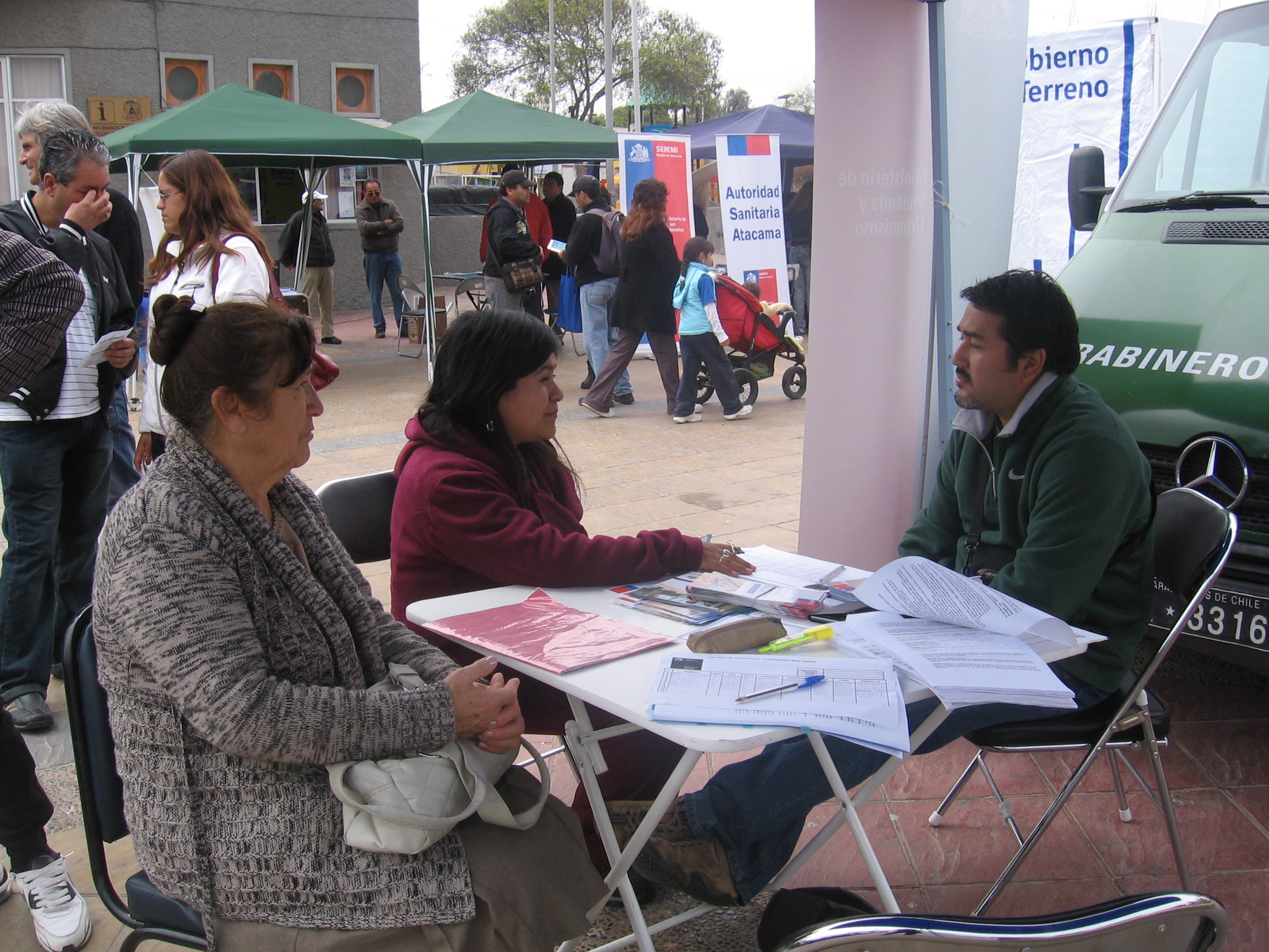 Más de 50 Servicios Públicos en Plaza de Gobierno en Terreno de Copiapó Al igual que en las otras 52 provincias a lo largo del país, en el sector de la Feria libre de Copiapó, ubicada en Avenida Lastarria con Avenida Circunvalación, se llevó a cabo la primera plaza de servicios públicos, con la que se dio por inaugurado el programa Gobierno en Terreno. |