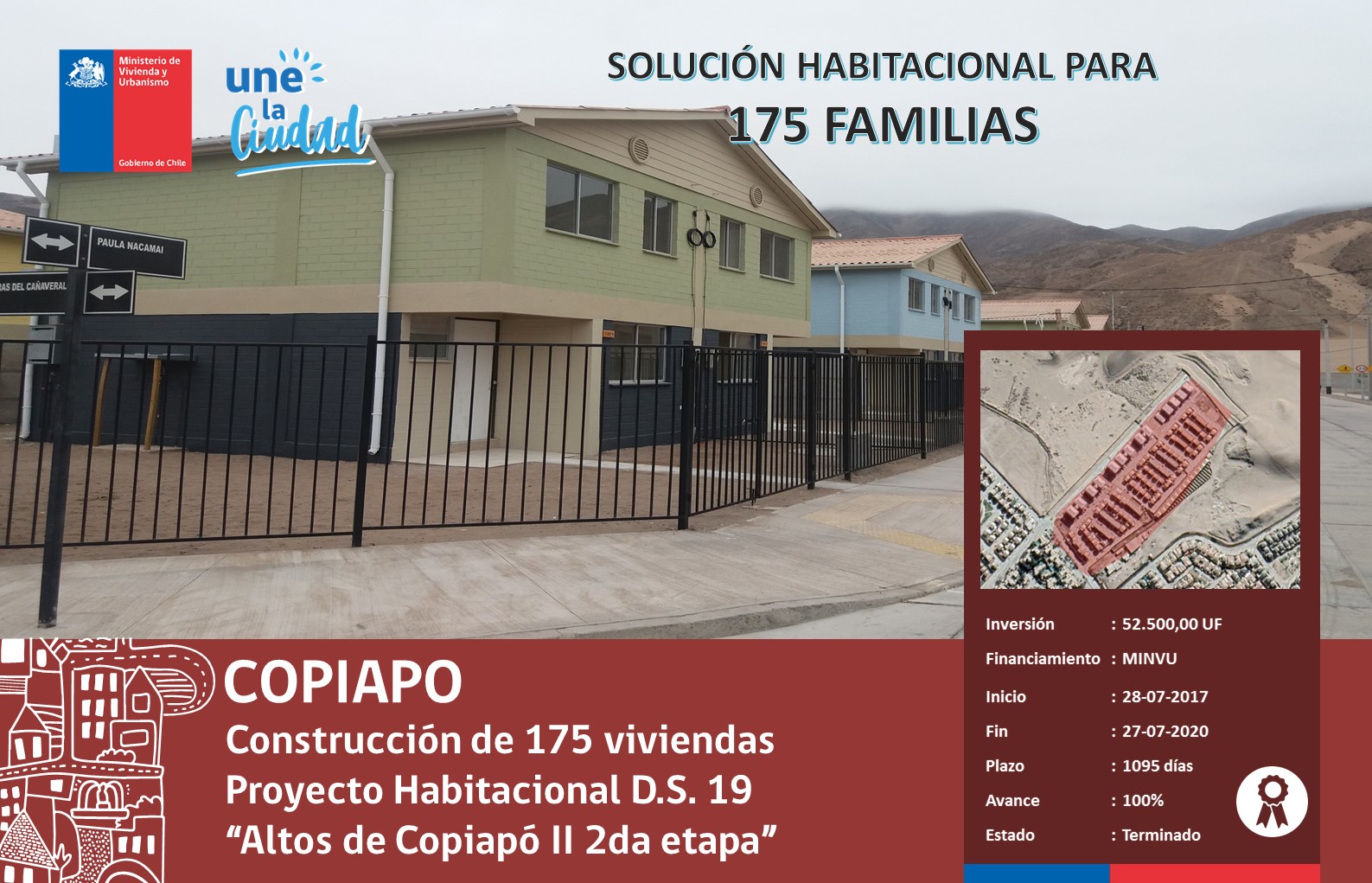 Construcción de 175 viviendas Proyecto Habitacional D.S. 19 "Altos de Copiapó II 2da etapa" |