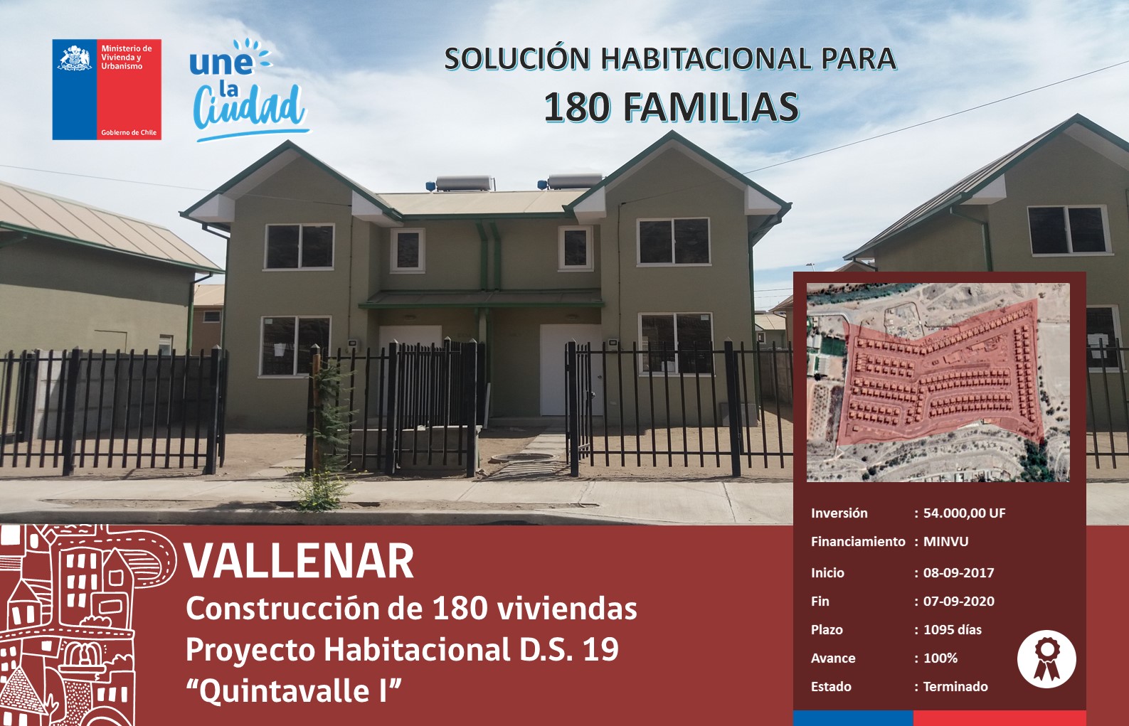 Construcción de 180 viviendas Proyecto Habitacional D.S. 19 "Quintavalle I" |