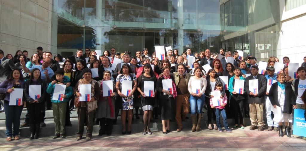 GOBIERNO ENTREGA 125 ESCRITURAS A FAMILIAS DE CONDOMINIO SOCIAL RENACER EN COPIAPÓ El Gobierno, por medio del Ministerio de Vivienda y Urbanismo, hizo entrega a 125 familias del condominio social Renacer, en la comuna de Copiapó, de sus respectivas escrituras cumpliendo su anhelo en plenitud de ser propietarios. |