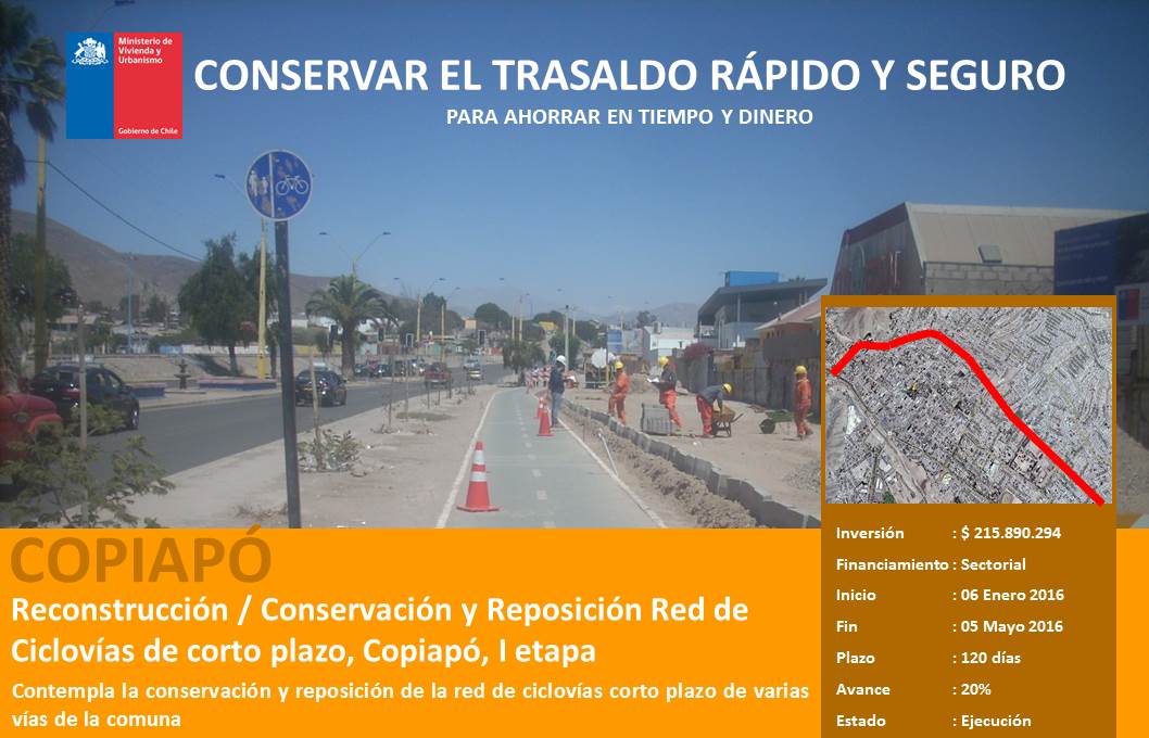 Reconstrucción/Conservación y Reposición Red de Ciclovías de corto plazo, Copiapó, I Etapa |