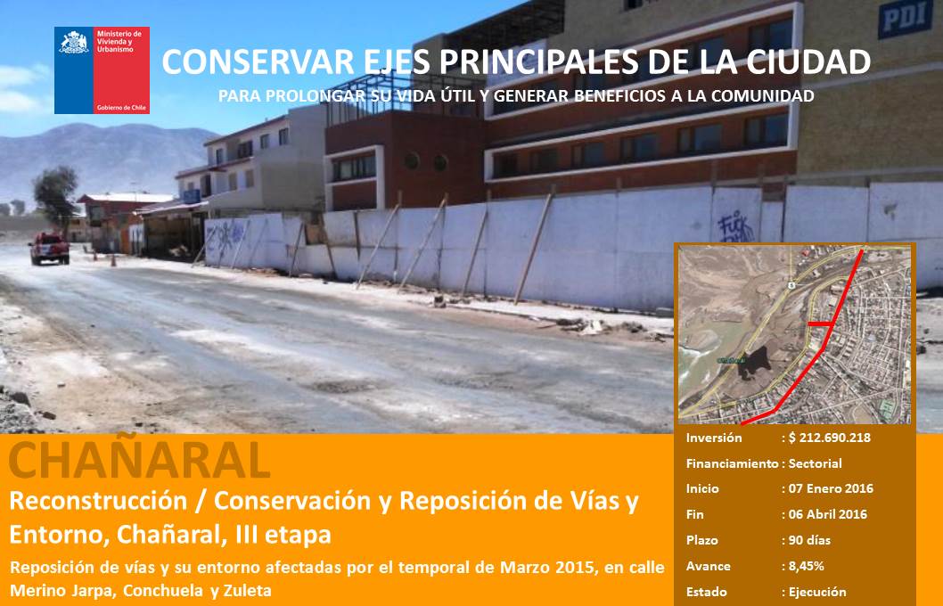 Reconstrucción / Conservación y Reposición de Vías y Entorno, Chañaral, III etapa |