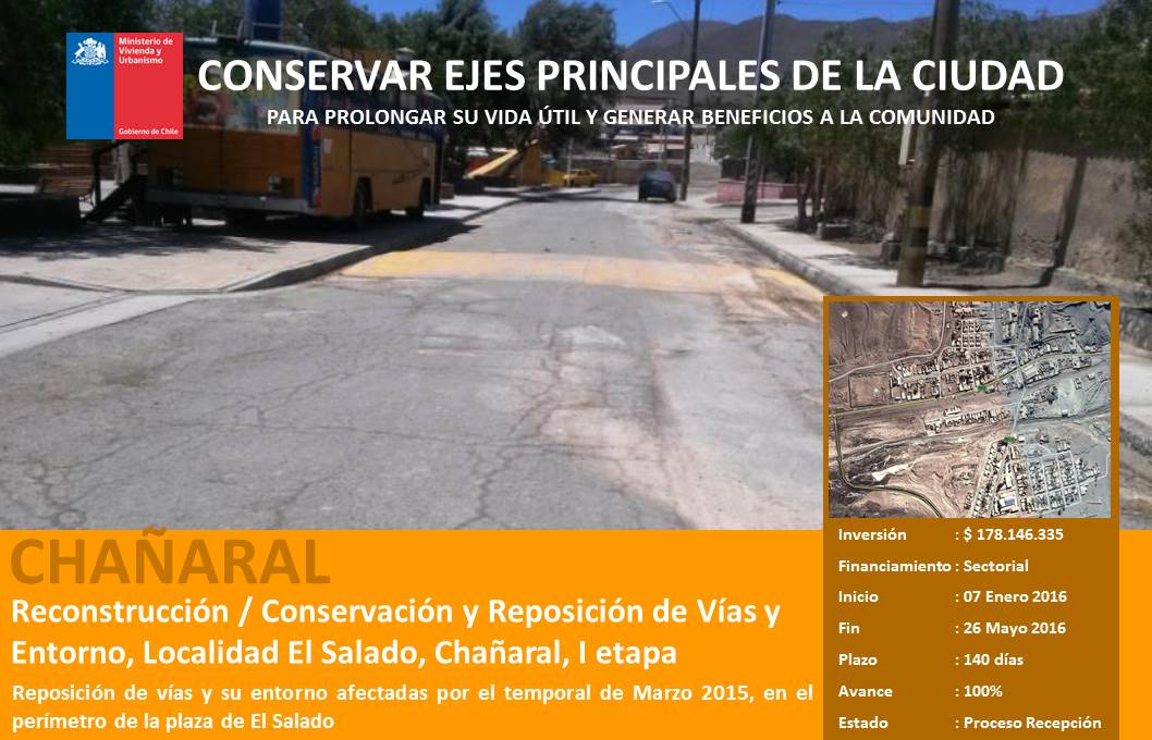 Reconstrucción / Conservación y Reposición de Vías y Entorno, Localidad El Salado, Chañaral, I etapa |