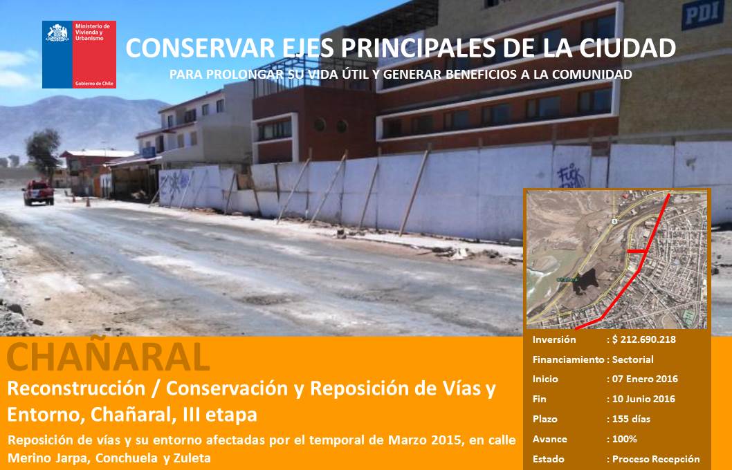 Reconstrucción / Conservación y Reposición de Vías y Entorno, Chañaral, III etapa |