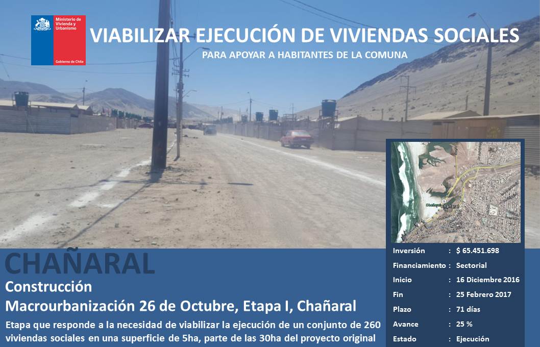 Construcción Macrourbanización 26 de Octubre, Etapa I, Chañaral