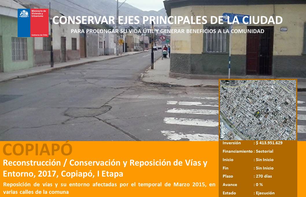 Reconstrucción / Conservación y Reposición de Vías y Entorno, 2017, Copiapó, 1 Etapa |