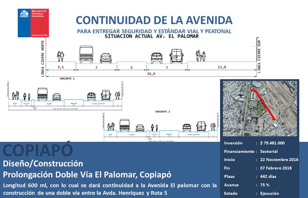 Diseño Construcción/Prolongación Doble vía El Palomar, Copiapó |