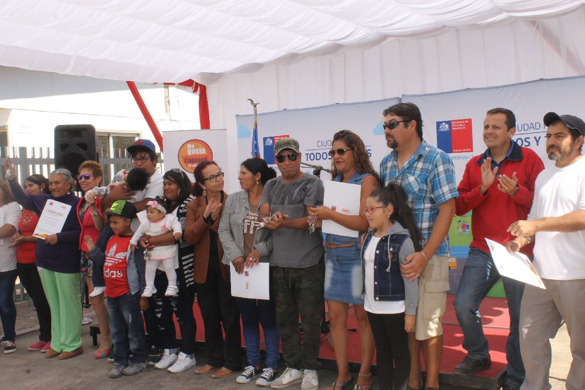 MINVU ENTREGA 182 SUBSIDIOS HABITACIONALES A FAMILIAS DE COPIAPÓEn una ceremonia presidida por el Intendente de Atacama, Francisco Sanchez, el Ministerio de Vivienda y Urbanismo, MINVU, hizo entrega de 182 nuevos subsidios habitacionales a familias de la comuna de Copiapó, ocasión en la que también participó el Seremi MINVU, Antonio Pardo, el Gobernador de la Provincia de Copiapó, Manuel Corrales, el alcalde comunal, Marcos López, los Parlamentarios Yasna Provoste y Juan Santana, el Director (s) Serviu Cristian Torres, Seremis y la concejala Paloma Fernández. |