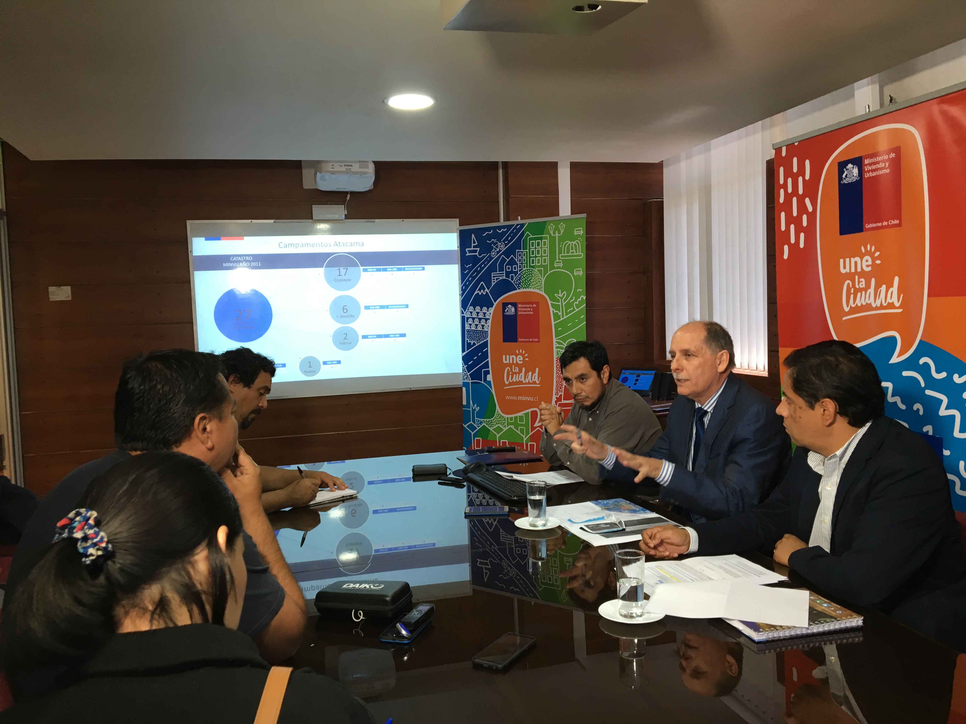 Autoridades presentan resultados del Catastro de Campamentos 2018 en Atacama El seremi Minvu, Antonio Pardo; el director del Serviu Atacama, Rodrigo Maturana y el encargado regional del programa Campamentos, Cristian Aguilera; presentaron los resultados del Catastro Nacional de Campamentos 2018 del Ministerio de Vivienda y Urbanismo del Gobierno de Chile, que evidenció un fuerte aumento de asentamientos precarios en la Región de Atacama. |