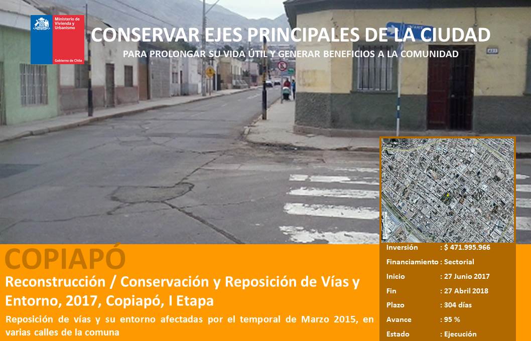 Reconstrucción/Conservación y Reposición de Vías y Entorno, 2017, Copiapó, I Etapa |