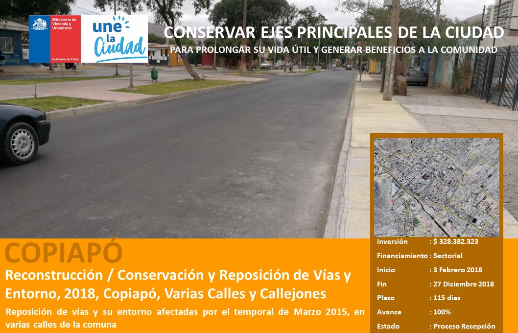 Reconstrucción / Conservación y Reposición de Vías y Entorno, 2018, Copiapó, Varias Calles y Callejones |