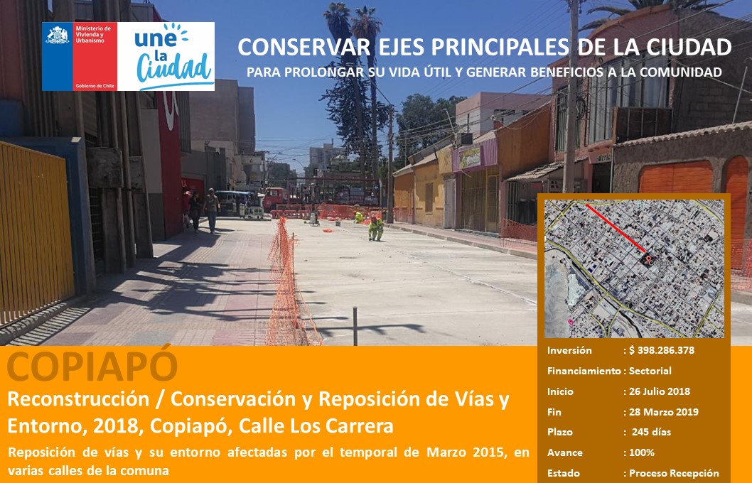 Reconstrucción / Conservación y Reposición de Vías y Entorno, 2018, Copiapó, Calle Los Carrera |