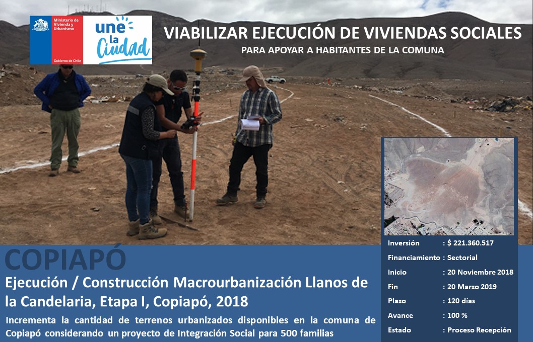 Ejecución / Construcción Macrourbanización Llanos de la Candelaria, Etapa I, Copiapó, 2018 |