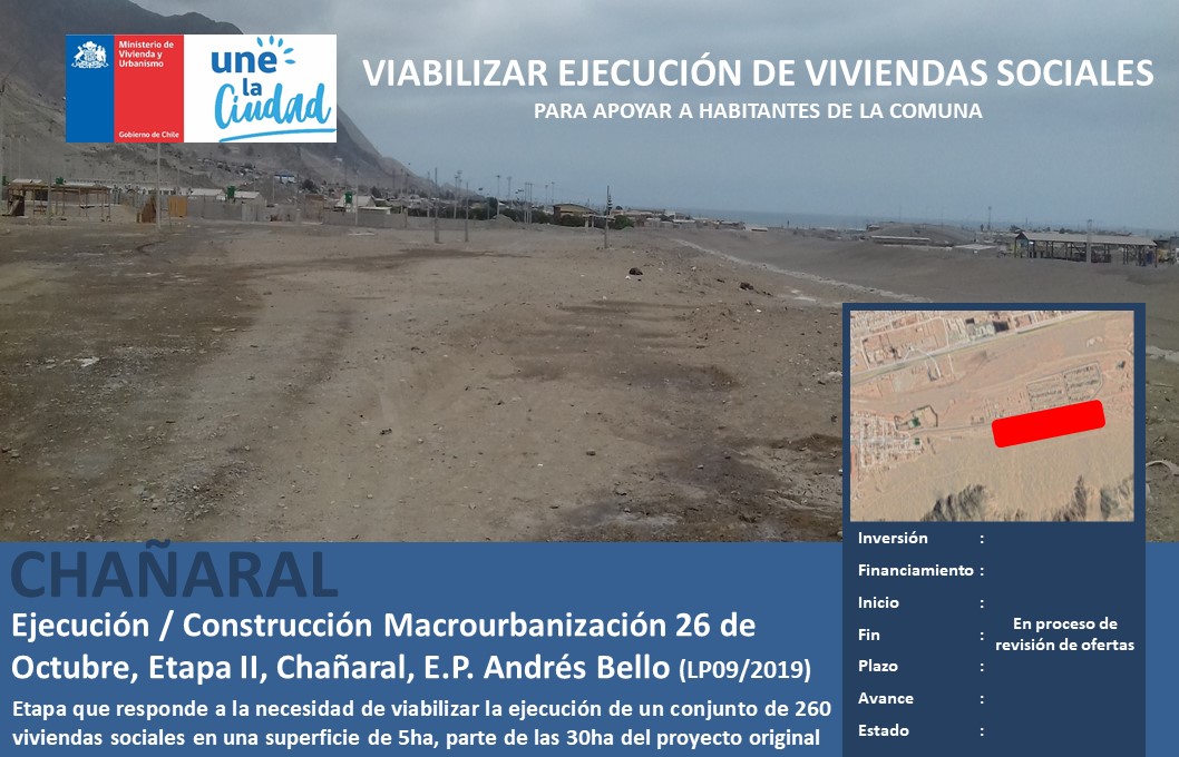 Ejecución / Construcción Macrourbanización 26 de Octubre, Etapa II, Chañaral 2018 (LP 44/2018) |