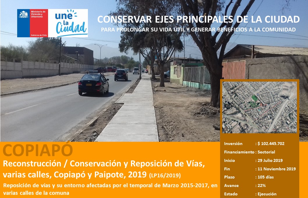 Reconstrucción / Conservación y Reposición de Vías varias calles, Copiapó y Paipote, 2019 (LP16/2019) |