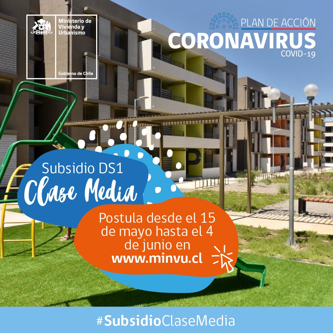 Comenzó la postulación 100 por ciento digital del Subsidio para la Clase Media del Minvu Como parte de las recomendaciones sanitarias de evitar la exposición de las familias a aglomeraciones por el riesgo de contagio del Covid-19, es que el Ministerio de Vivienda y Urbanismo inició, éste 15 de mayo, el proceso de postulación al Subsidio para la Clase Media de manera totalmente digital, el cual se extenderá hasta el 4 de junio de 2020. |