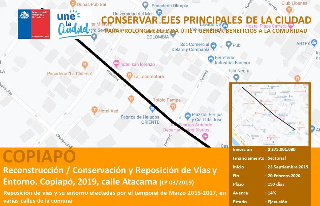 Reconstrucción / Conservación y Reposición de Vías y Entorno, Copiapó, 2019, calle Atacama (LP 03/2019) |