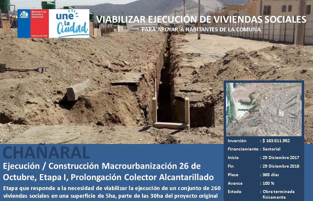 Ejecución / Construcción Macrourbanización 26 de Octubre, Etapa 1, Chañaral 2018