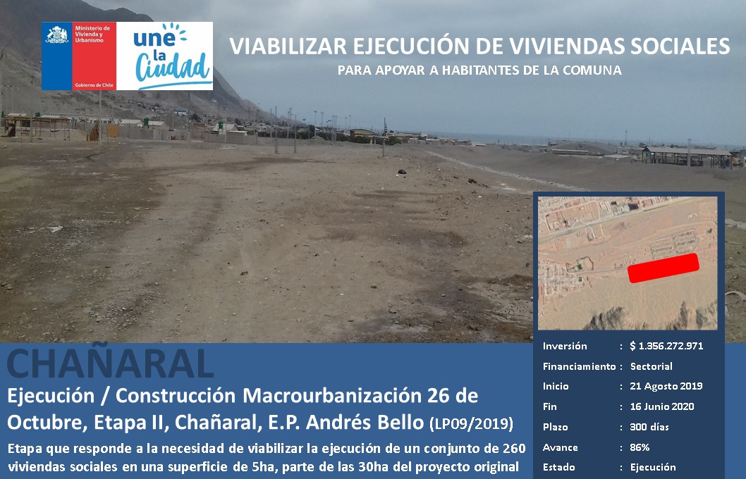 Ejecución / Conservación Macrourbanización 26 de Octubre, Etapa II, Chañaral, E.P. Andrés Bello (LP09/2019)