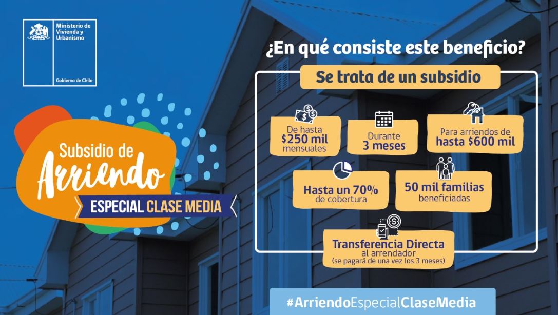 Este 30 de julio cierran las postulaciones al Subsidio de Arriendo Especial Clase Media del Minvu Este viernes 30 de julio termina el plazo para postular al Subsidio Especial de Arriendo Clase Media del Ministerio de Vivienda y Urbanismo, según explicó el Ministro de la cartera, Felipe Ward, expresando que es un beneficio extraordinario que otorga una ayuda económica para a todas las personas que resultaron afectadas económicamente por la pandemia. |