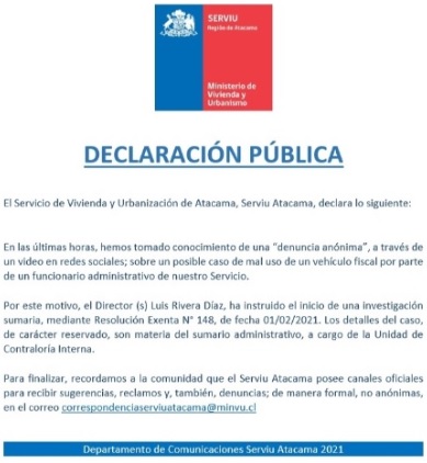 Declaración pública a raíz de una denuncia anónima, viralizada a través de redes sociales. Declaración pública a raíz de una denuncia anónima, viralizada a través de redes sociales. |