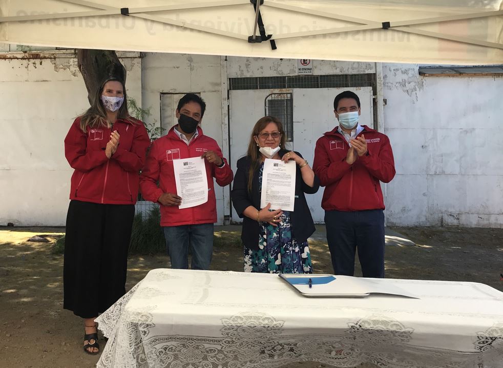 Serviu Atacama otorga comodato de terreno Con la participación del Delegado Presidencial Regional de Atacama, Patricio Urquieta; la Delegada de Hacienda, Soledad Lingua y el Director del Serviu Atacama, Rodrigo Maturana; se firmó el acta de entrega en comodato del terreno de 537 m2, denominado "Lote 2", ubicado en calle Malaquita S/N, Población Los Minerales, comuna de Copiapó; desde el Servicio de Vivienda y Urbanización a la Junta de Vecinos "Villa Mantos Verdes", representada por su presidenta Cecilia Gómez. |