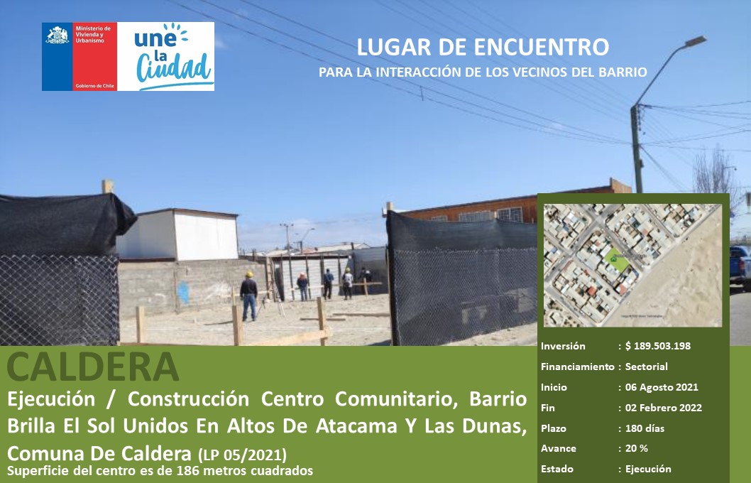 Ejecución / Construcción Centro Comunitario, Barrio Brilla El Sol Unidos En Altos De Atacama Y Las Dunas, Comuna de Caldera (LP 05/2021)
