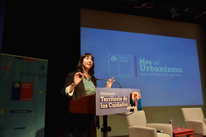 Subsecretaria Tatiana Rojas inaugura seminario "Territorio de los Cuidados" enfocado en el liderazgo femenino en políticas de ciudadLa subsecretaria de Vivienda y Urbanismo, Tatiana Rojas Leiva, encabezó esta mañana la inauguración el seminario "Territorio de los Cuidados", enmarcado en la celebración del Mes del Urbanismo con Enfoque de Género del Minvu, instancia que contó con exponentes nacionales e internacionales para abordar los desafíos y oportunidades de las ciudades en materia de vivienda, el liderazgo de las mujeres en políticas urbano-habitacionales y buenas prácticas de cuidados territoriales. |