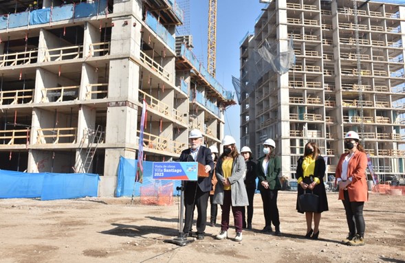 Gobierno destaca avance de obras habitacionales de la Villa Santiago 2023 Esta mañana el ministro de Vivienda y Urbanismo, Carlos Montes, junto a su par de Deporte, Alexandra Benado, y la subsecretaria del Minvu, Tatiana Rojas, realizaron una visita a las obras de la Villa Santiago 2023, que será el epicentro de los próximos Juegos Panamericanos y Parapanamericanos que organizará nuestro país y cuyas viviendas se transformarán posteriormente en el hogar de más de 1.300 familias. |
