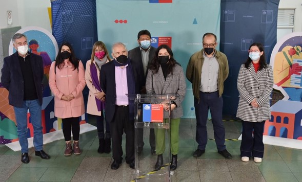 Se conforma mesa multisectorial para avanzar en el Plan de Emergencia HabitacionalEsta mañana, las autoridades encabezadas por el ministro de Vivienda y Urbanismo, Carlos Montes, junto al ministro de Desarrollo Social y Familia, Giorgio Jackson; la ministra de Salud, Ximena Aguilera; la ministra de La Mujer y Equidad de Género, Antonia Orellana; el subsecretario de Prevención del Delito, Eduardo Vergara; la subsecretaria de las Culturas y las Artes, Andrea Gutiérrez |