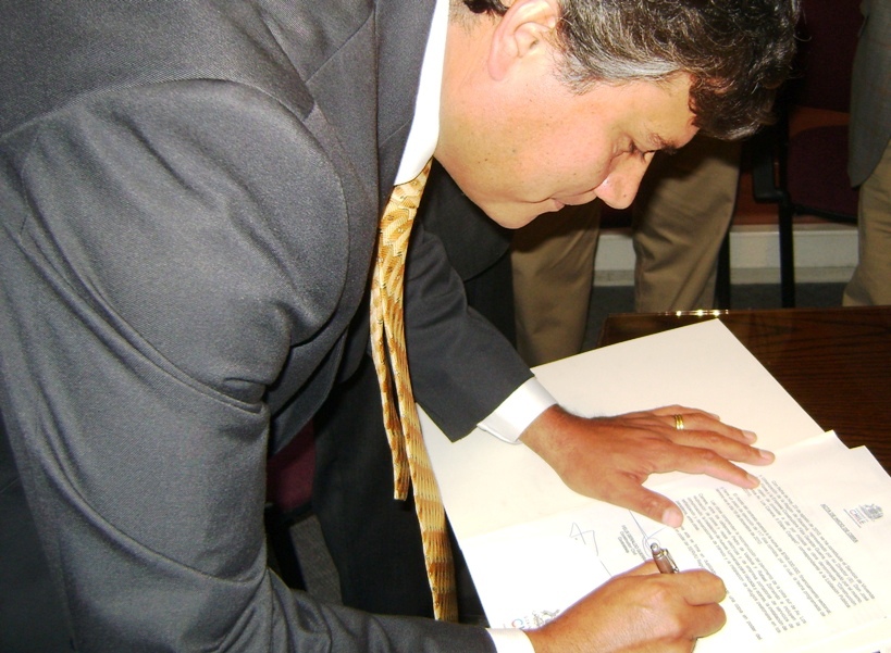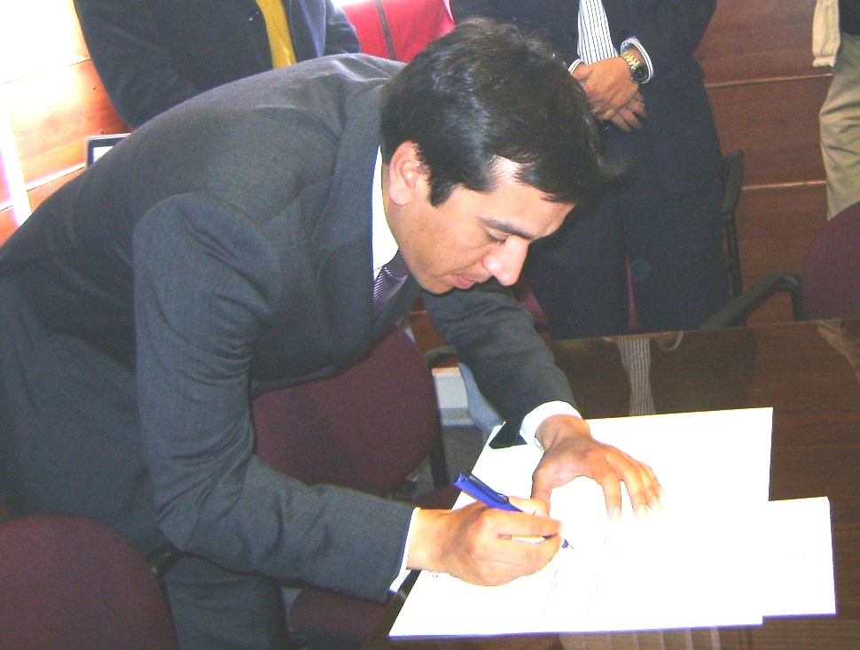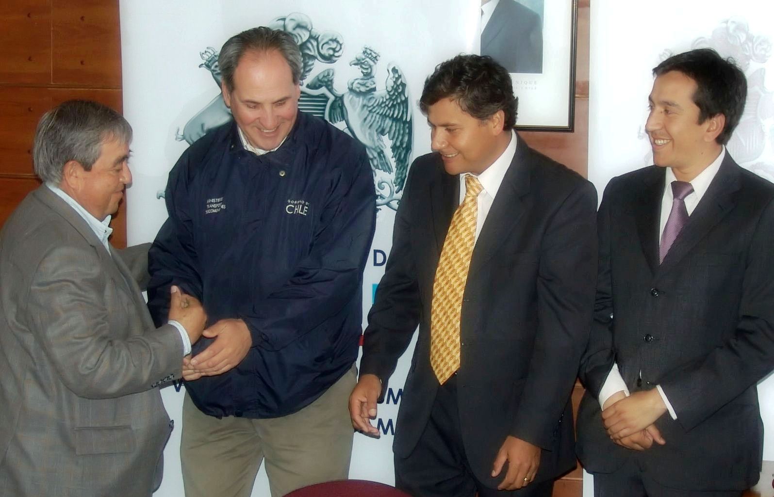 El Seremi de Vivienda y Urbanismo, Pablo Carrasco; el Seremi de Transportes y Telecomunicaciones, Alberto Barrionuevo; el director (S) de SERVIU Atacama, José Tello y el contratista Félix Geraldo Guerra, firmaron este lunes el Acta de Entrega de Terreno, con lo que se inició la "Construcción de Pavimentos Avenida Los Carrera Segunda Etapa", correspondiente a la Licitación Pública Nº 03/2010.