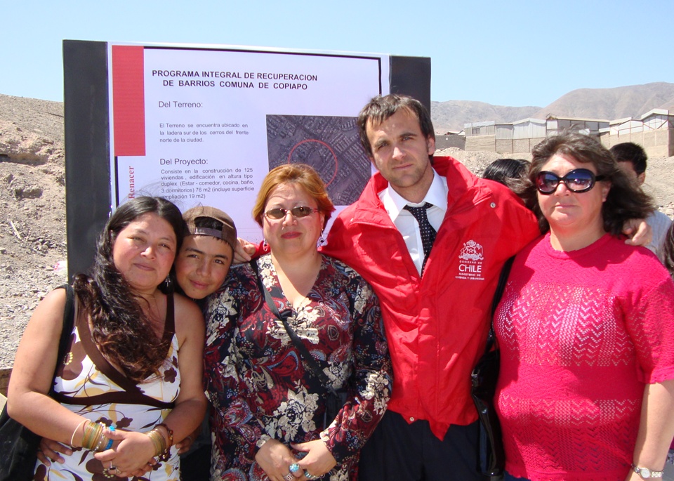 Posteriormente, autoridades nacionales y regionales visitaron en compañía de los vecinos del Barrio Arturo Prat y de los futuros beneficiarios del Fondo Solidario de Vivienda del Minvu, el terreno en el que se emplazará el proyecto habitacional "Renacer" patrocinado por la Egis Un Techo Para Chile, para erradicados de campamentos de la comuna de Copiapó.