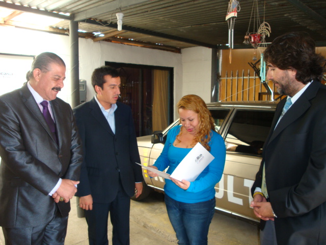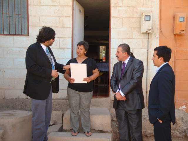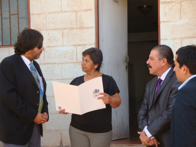 Las autoridades del sector vivienda, Pablo Carrasco, Seremi del MINVU y Carlos Valdebenito, Director SERVIU, acompañados del Alcalde de la comuna, Maglio Cicardini y representantes de la Entidad de Gestión e Inmobiliaria Social (EGIS) del municipio de Copiapó, se dieron cita en la población El Chañar, para entregar el esperado subsidio habitacional que permitirá a 41 familias de la comuna mejorar su actual vivienda con proyectos que, en esta ocasión, permitirán ampliar sus casas.