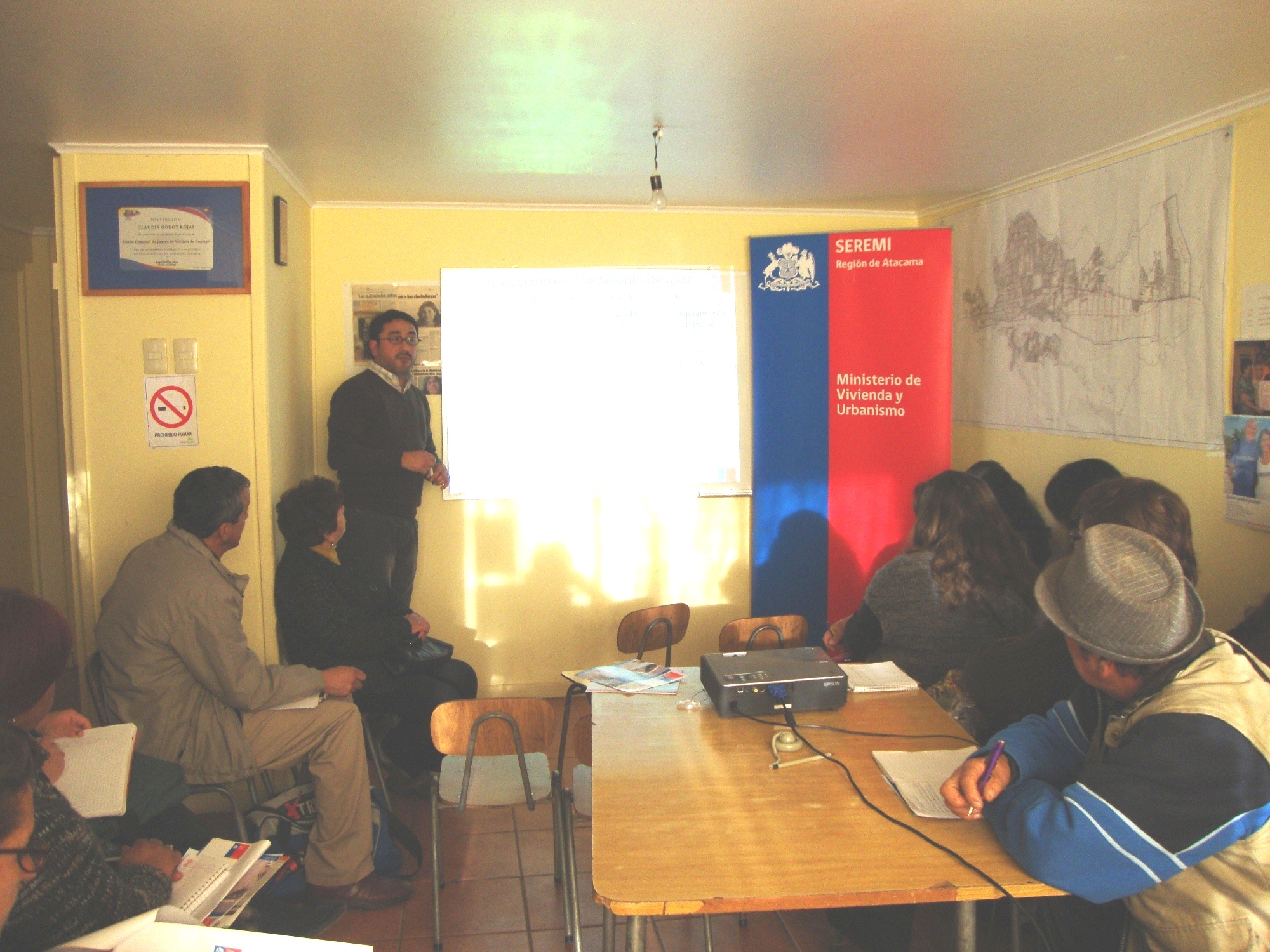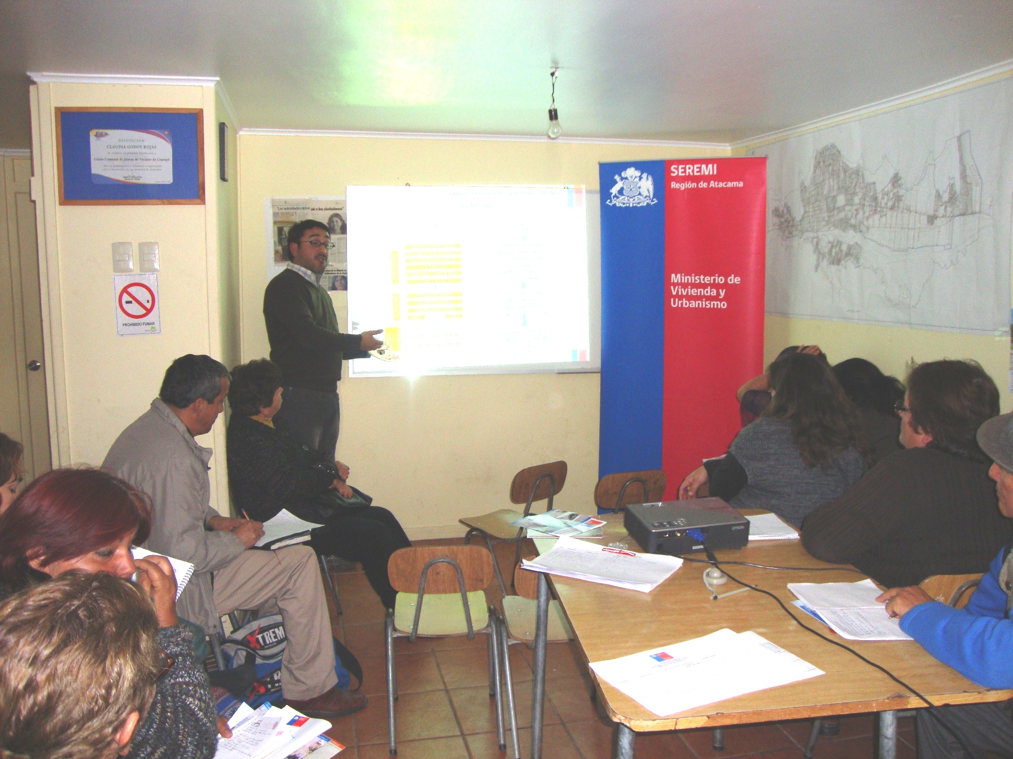 En una actividad conjunta entre la Seremi Minvu y Serviu Atacama, el encargado del Sistema Integrado de Atención a la Ciudadanía, SIAC Serviu, Ronie Flores, dictó una charla a los directivos de la Unión Comunal de Juntas de Vecinos de Copiapó sobre el subsidio habitacional Decreto Supremo Nº 1 para Grupos Emergentes y Sectores Medios.