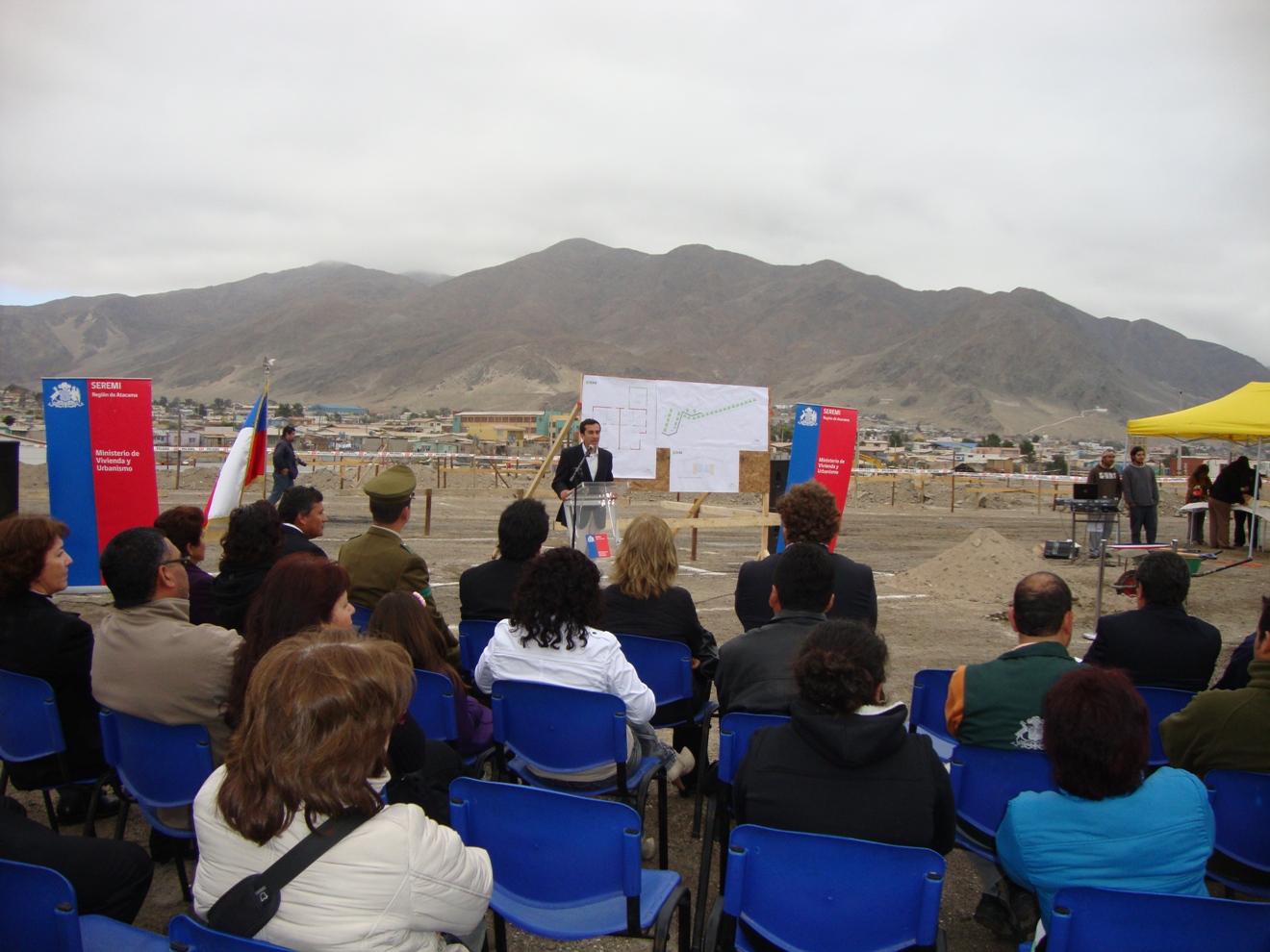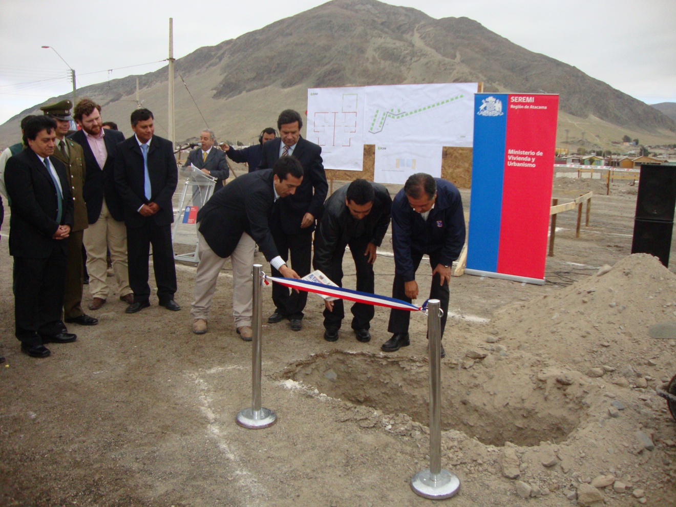 En la calle Julio Montt de la comuna de Chañaral, con la presencia de autoridades y beneficiarios, se realizó la ceremonia de colocación de la primera piedra del conjunto habitacional de 55 viviendas "El Taltalino" que será ejecutado por Serviu Atacama, cuya inversión supera los 700 millones de pesos, entre el ahorro de las familias y el aporte del Gobierno de Chile, a través del subsidio del Fondo Solidario Título I, del Ministerio de Vivienda y Urbanismo.