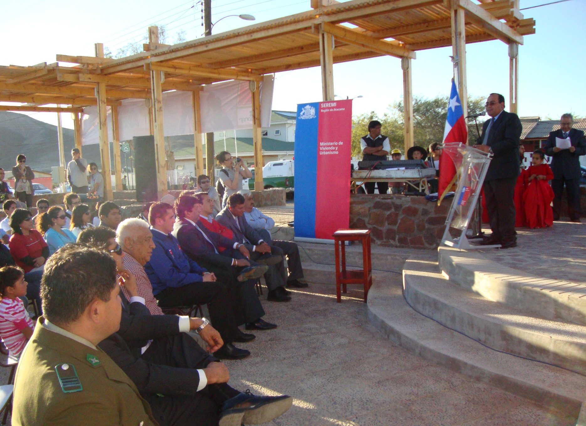 En un ambiente familiar, el Seremi Minvu Atacama, Pablo Carrasco Milla; el alcalde de la comuna de Vallenar, Cristian Tapia Ramos y el Presidente del Consejo Vecinal de Desarrollo, Edgardo Toledo; encabezaron la entrega a la comunidad de las obras Museo de Sitio, Radio Enlaser y Graderías de la Multicancha ejecutadas por Serviu Atacama e insertas en el Programa Recuperación de Barrios del Minvu, cuya inversión asciende a $112 millones.