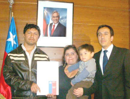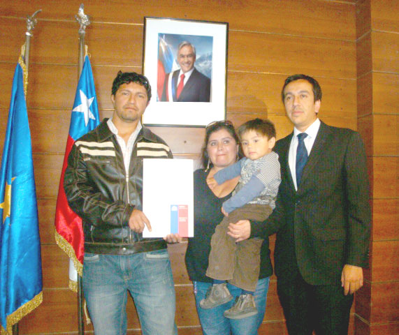 El beneficiario Arnoldo Araya junto a su esposa Maricel Igor y a uno de sus pequeños hijos, después de años de espera, con un ahorro de 30 UF y subsidio en mano, podrán adquirir una vivienda de hasta 1.000 UF. "Es una gran felicidad para mí y para mi señora haber cumplido esta etapa, más que nada, por nuestros hijos, para que tengan su casa", afirmó.