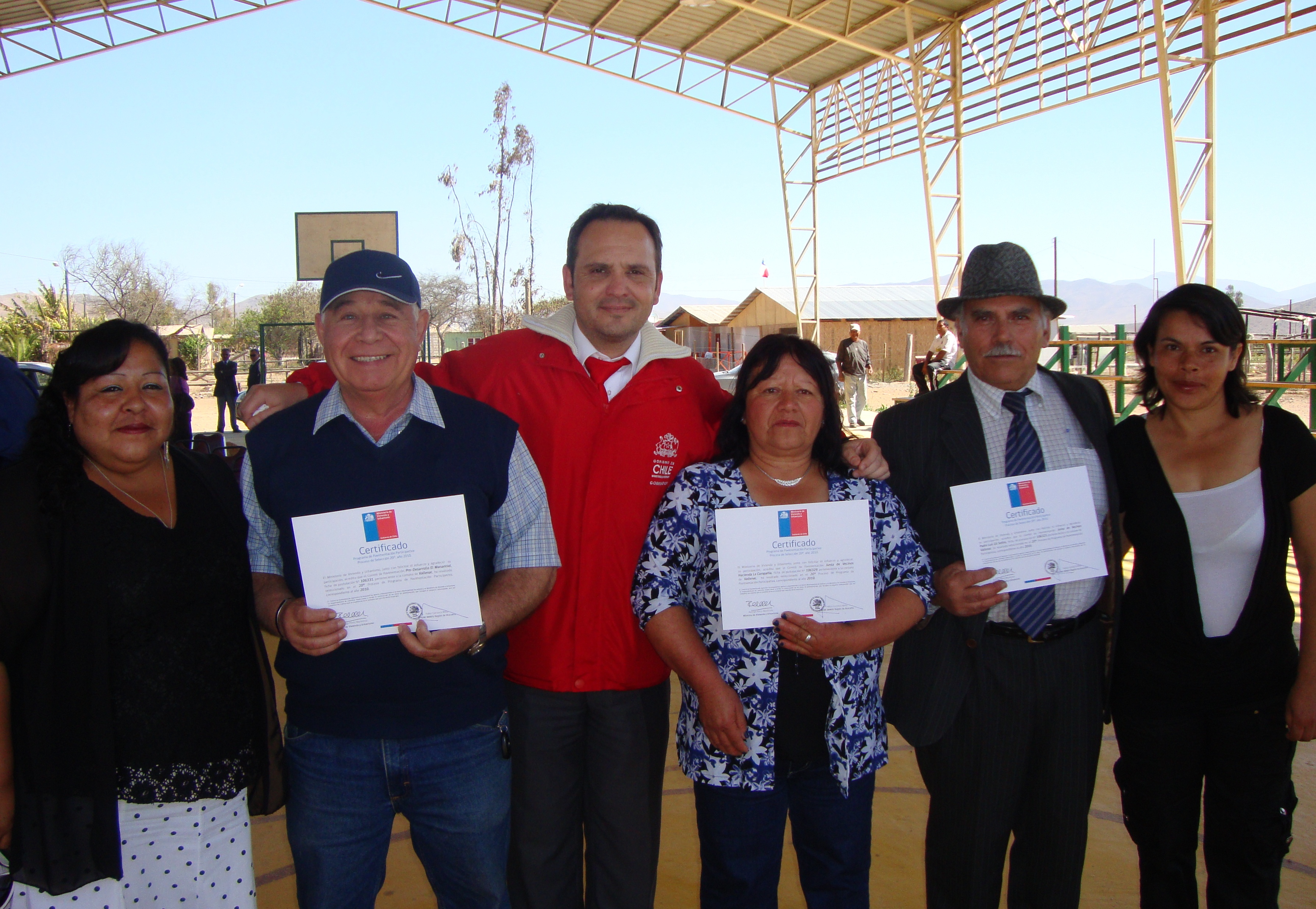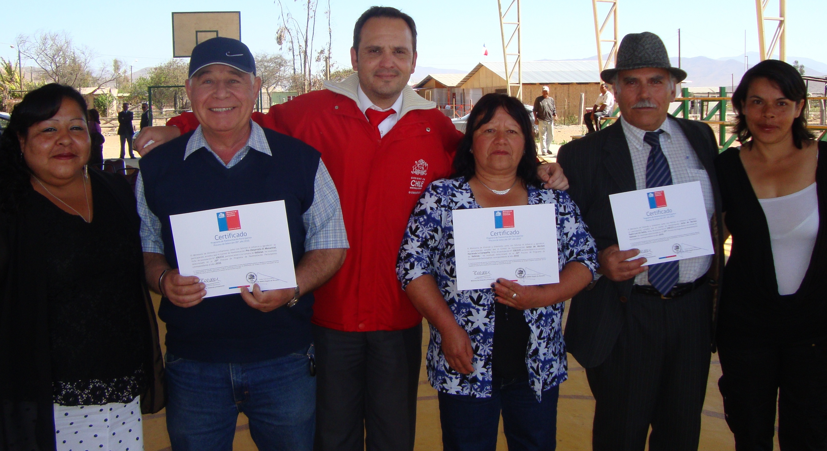 El gobernador de Huasco encabezó la entrega de los siete certificados de pavimentación participativa a los representantes de las juntas de vecinos de Hacienda La Compañía, Hermanos Carrera (Pasaje Esmeralda), Baquedano (Pasaje Vicuña Mackenna), Rafael Torreblanca (Pasaje Los Placeres), Quinta Valle (Calle Zlatar), Villa Concepción de la Población Ventanas (Calle Isla de Pascua) y Sector Centro (Pasajes Oriente, 1 Sur, 2 Sur y 3 Sur).