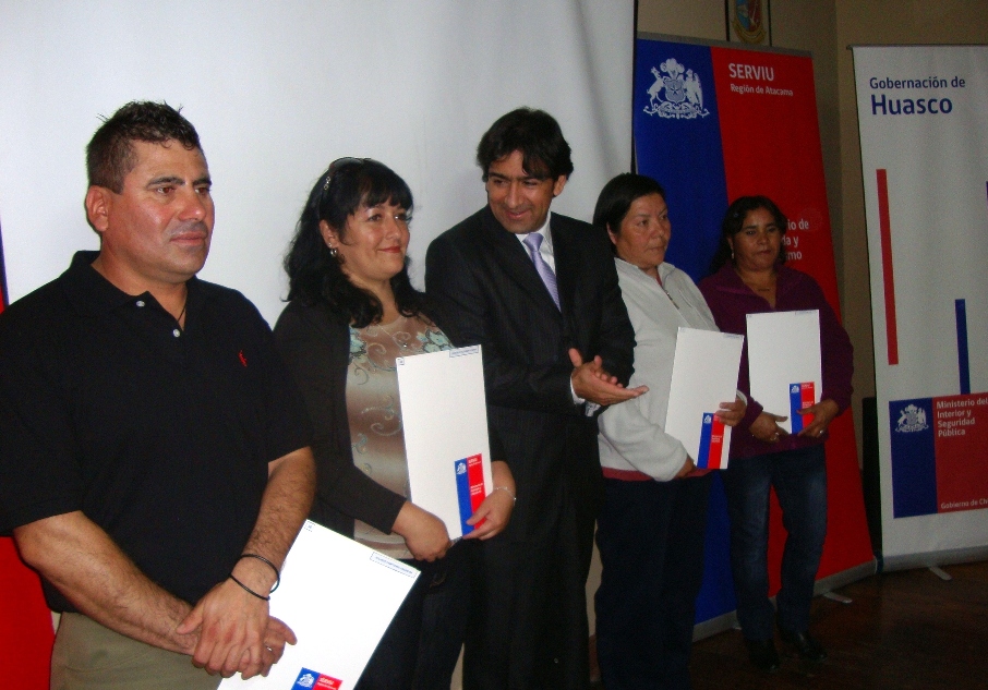 Los 49 beneficiarios del subsidio para Grupos Emergentes y Sectores Medios y los 25 del subsidio del Programa de Protección de Patrimonio Familiar recibieron su certificado en el salón de la Gobernación Provincial de Huasco.