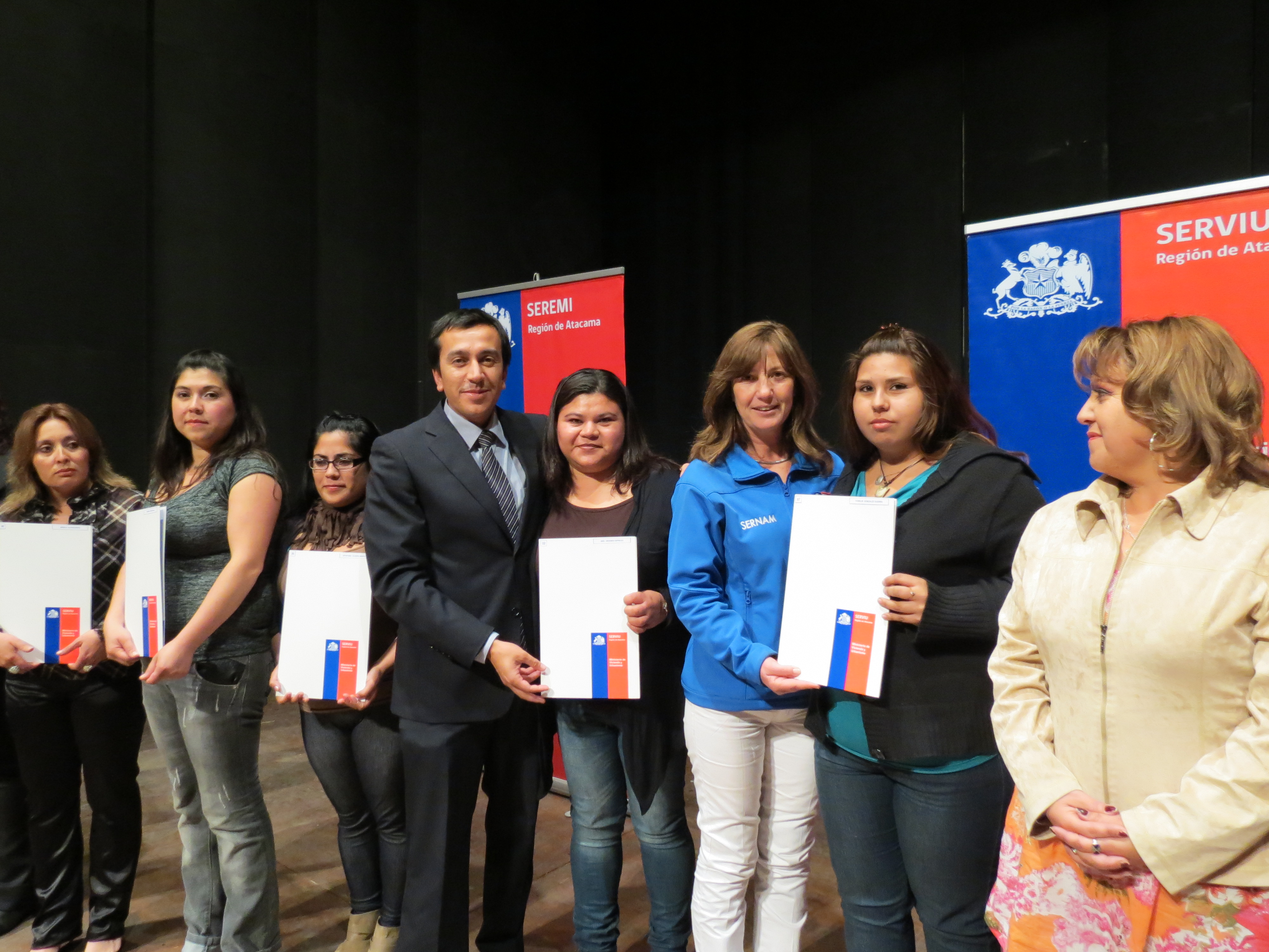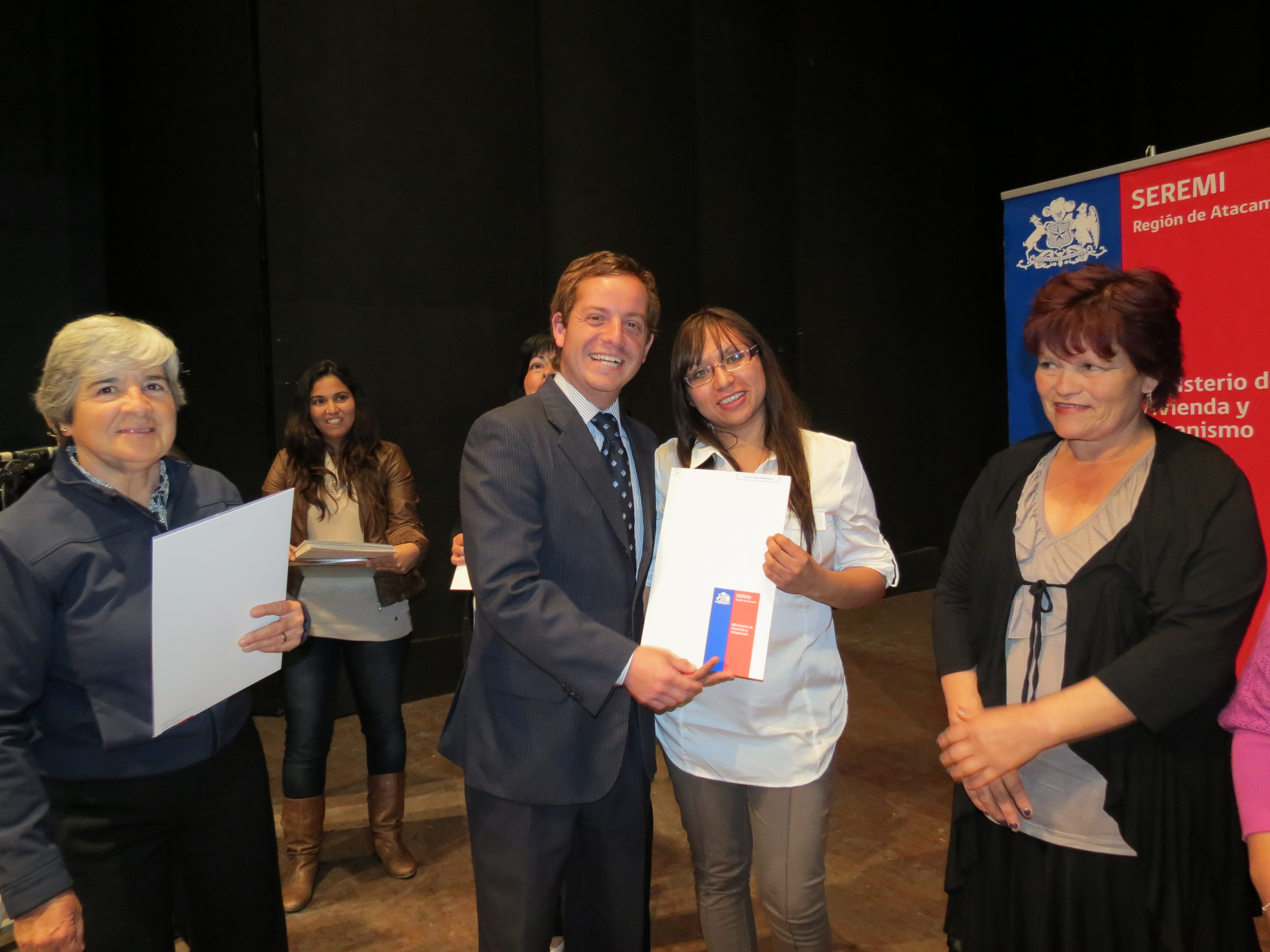 En la ceremonia también participaron el diputado Giovanni Calderón, el alcalde (S) de Copiapó, Ibar Espinoza; el seremi de Bienes Nacionales, Daniel Huencho; la directora de Sernam, María Teresa Cañas; la encargada de la Subdere, Lina Arrieta; y la jefa del departamento de Operaciones Habitacionales de Serviu Atacama, Yasna Godoy; junto a los familiares de las beneficiarias y beneficiarios.