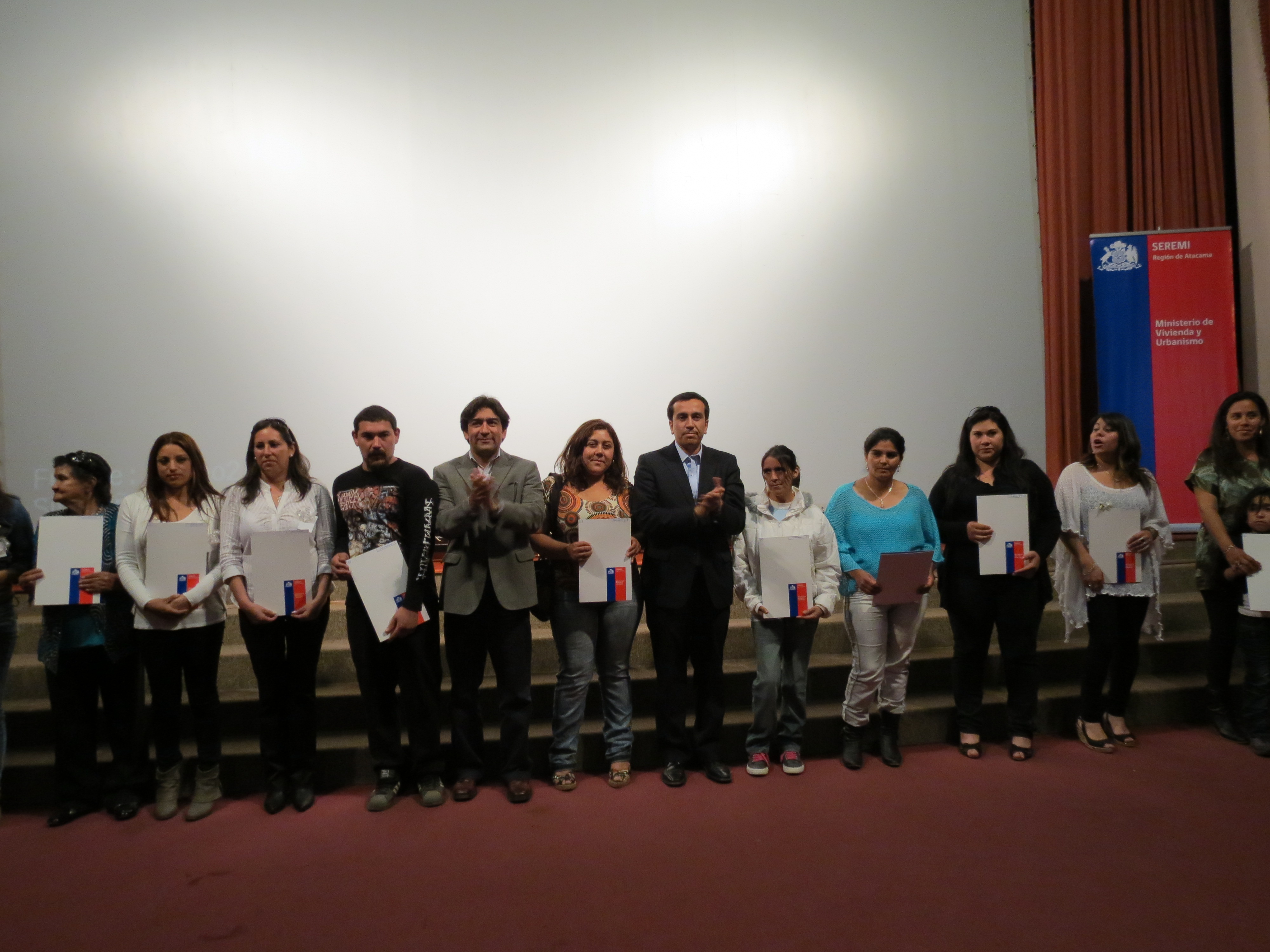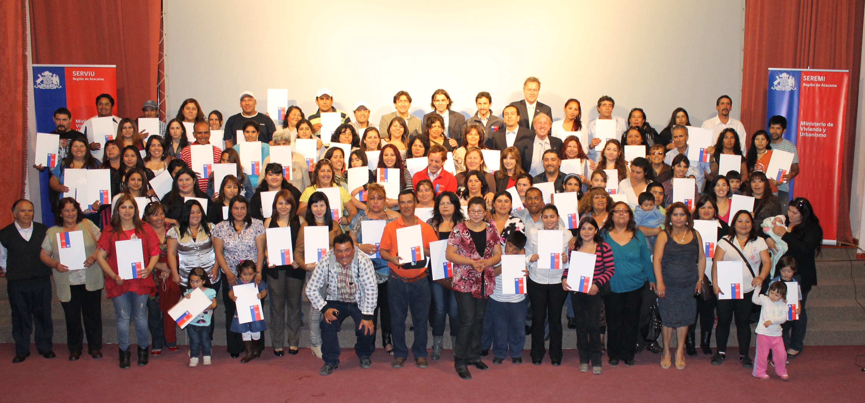 En la Sala de Cámara de la capital regional se efectuó la ceremonia de entrega de 73 subsidios habitacionales del Programa Fondo Solidario de Elección de Vivienda del Ministerio de Vivienda y Urbanismo, que benefició a más de 300 personas de campamentos de la comuna de Copiapó.