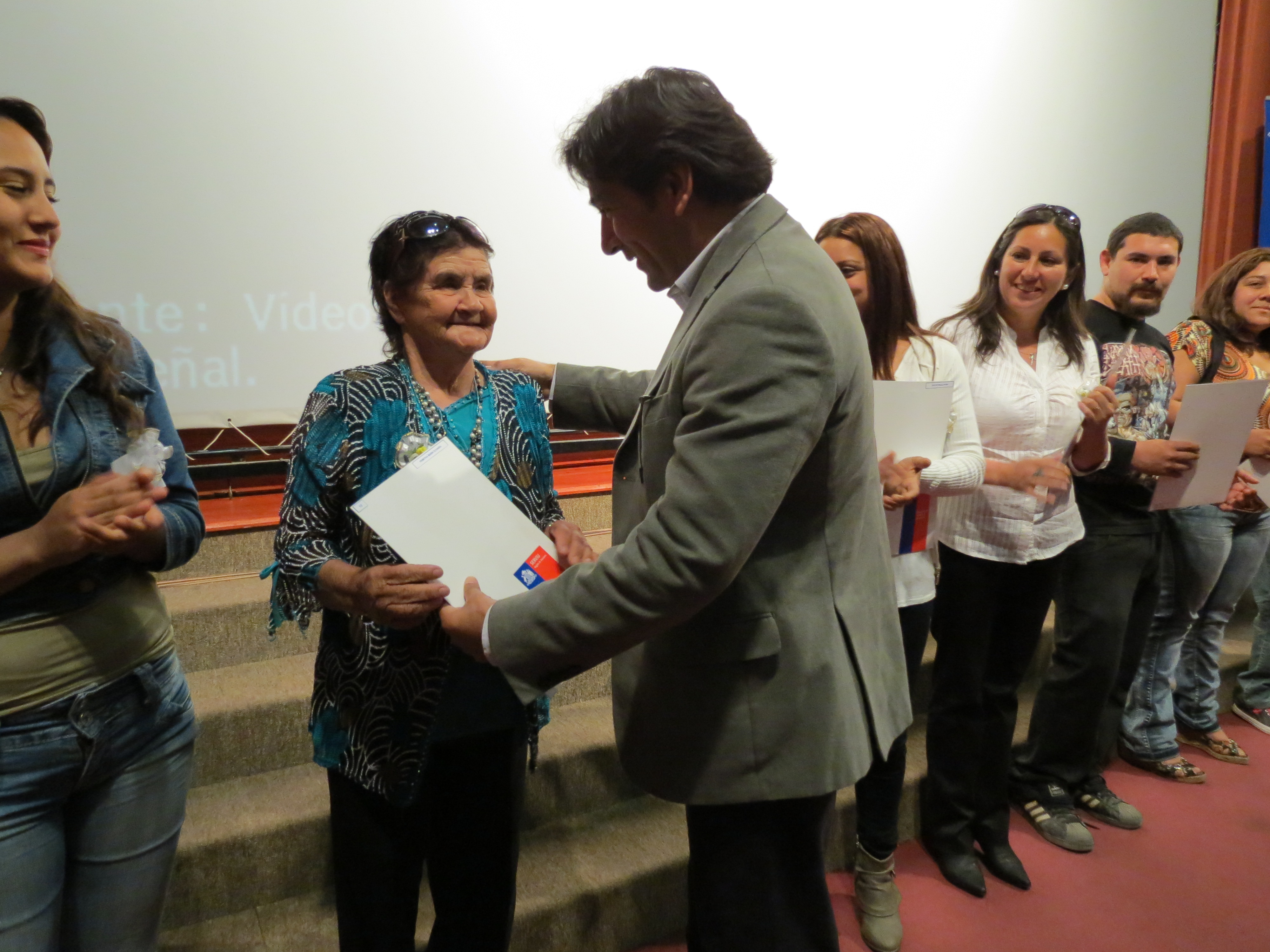 Un momento muy emotivo vivieron las familias cuando se proyectó una crónica sobre su vida en diversos campamentos de Copiapó, realizada por TVN Red Atacama, en la que destacaba la historia de la beneficiaria Primitiva Marín que, después de largos años de espera, recibió su subsidio habitacional durante la jornada.