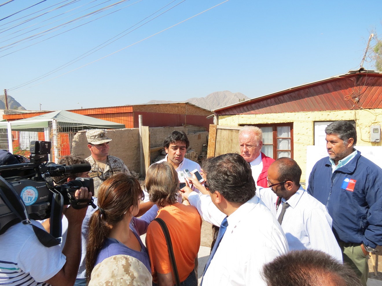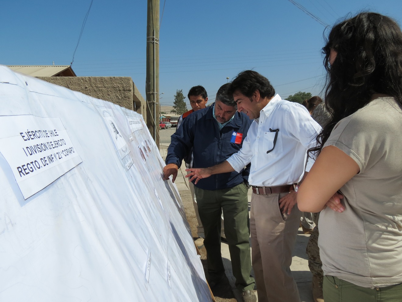 El Gobernador Provincial de Copiapó Eduardo Esteffan junto al director de Serviu Atacama, Harry Lagunas; autoridades del Ejército y ONEMI, realizaron una visita a las viviendas de emergencia dispuestas para aquellas familias de Paipote cuyas residencias sufrieron daños estructurales en el sismo del 30 de enero.