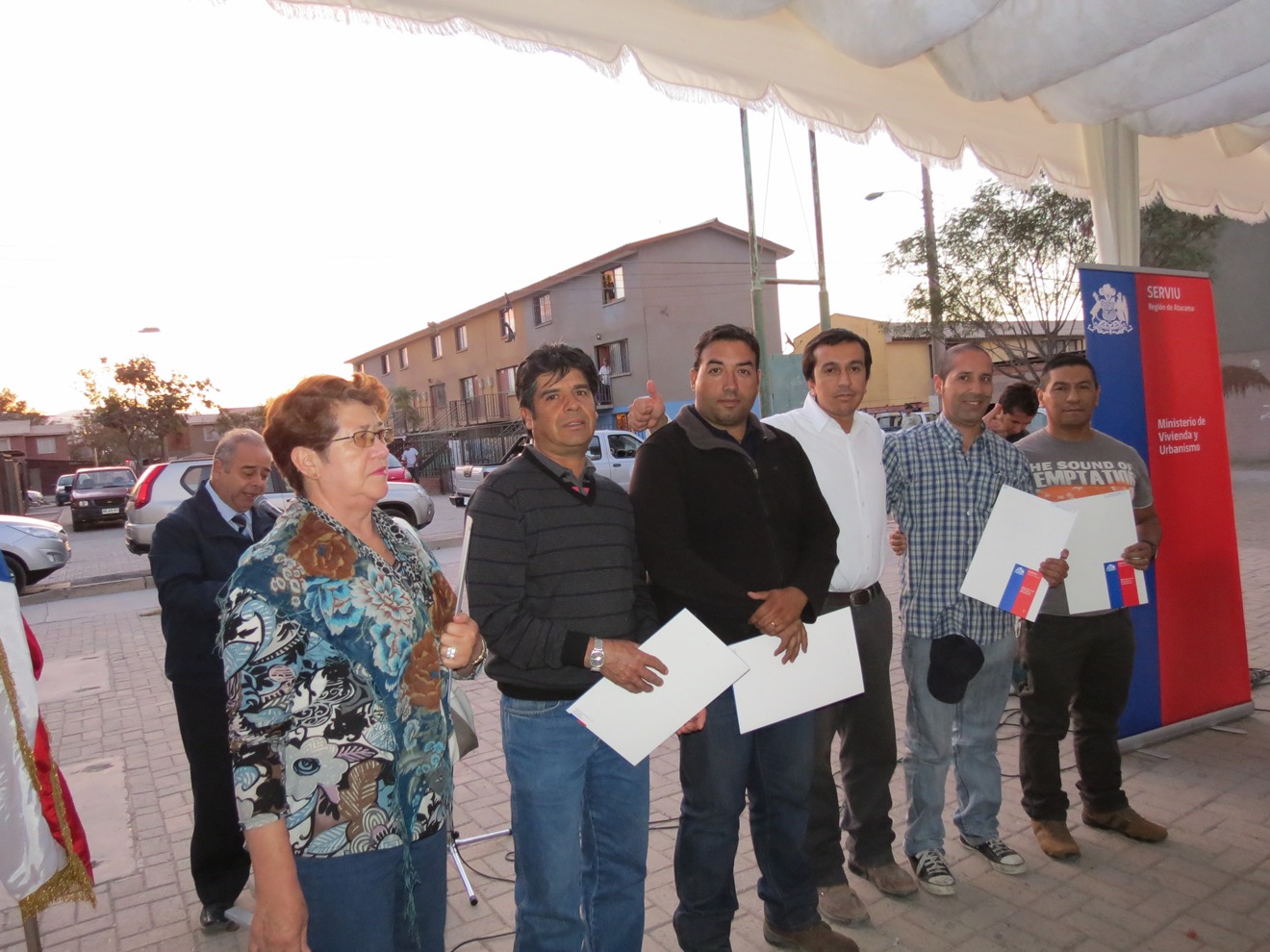 En la plazoleta del condominio social Llanos de Ollantay, en la comuna de Copiapó, se efectuó la ceremonia de entrega de 60 certificados de subsidio habitacional del Programa de Protección del Patrimonio Familiar, organizada por el equipo de Desarrollo de Barrios de la Seremi Minvu.