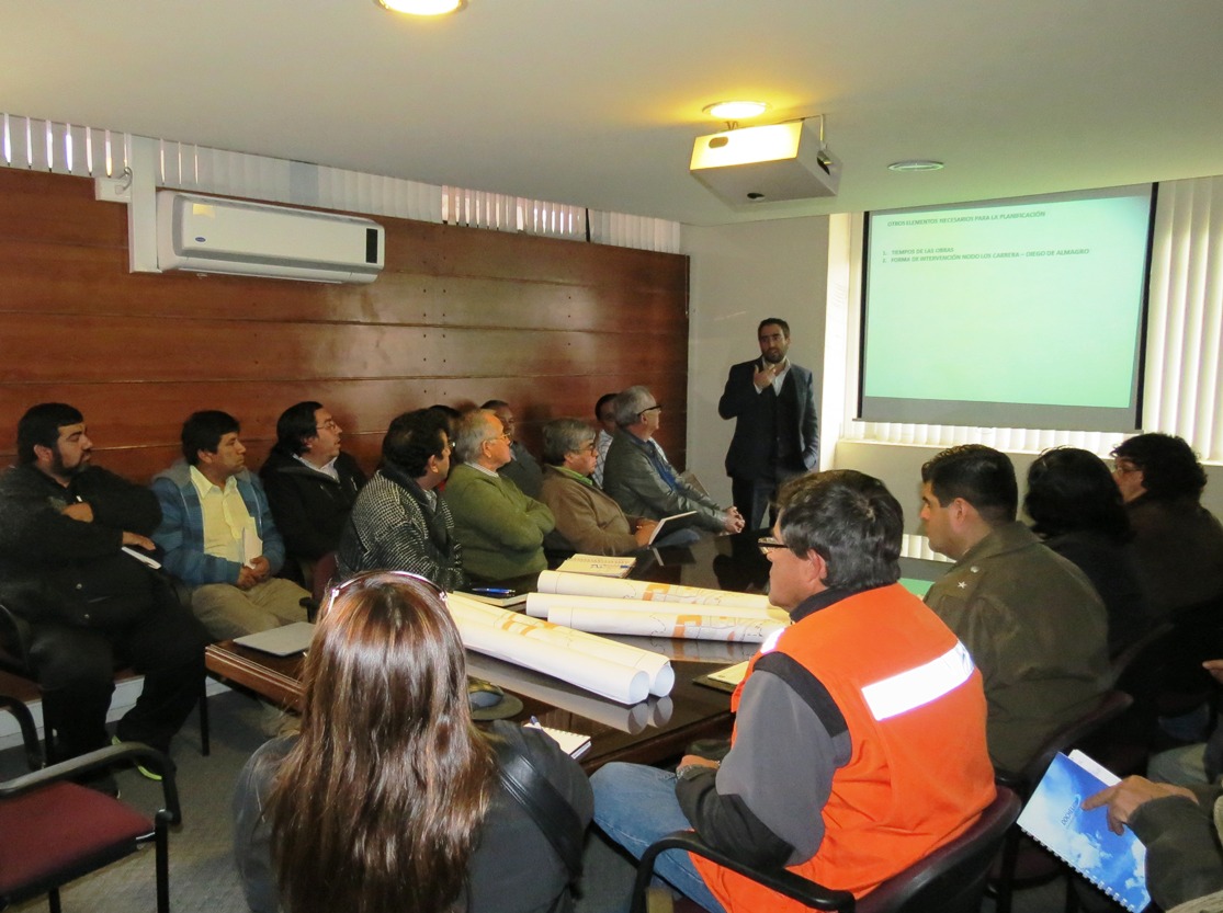 En el salón de Serviu Atacama se efectuó una reunión de coordinación intersectorial en la que participaron el seremi Minvu, Pablo Carrasco; profesionales del Ministerio de Transportes, Serviu Atacama, Aguas Chañar, Emelat, Carabineros de Chile y representantes nacionales y regionales de los gremios de locomoción colectiva y las empresas contratistas a cargo de la obras; todo lo anterior en el marco de un cronograma de trabajo que tiene como objetivo informar los avances de las obras de la última etapa de Avenida Los Carrera y su impacto en el sistema de vialidad urbana de la comuna de Copiapó.