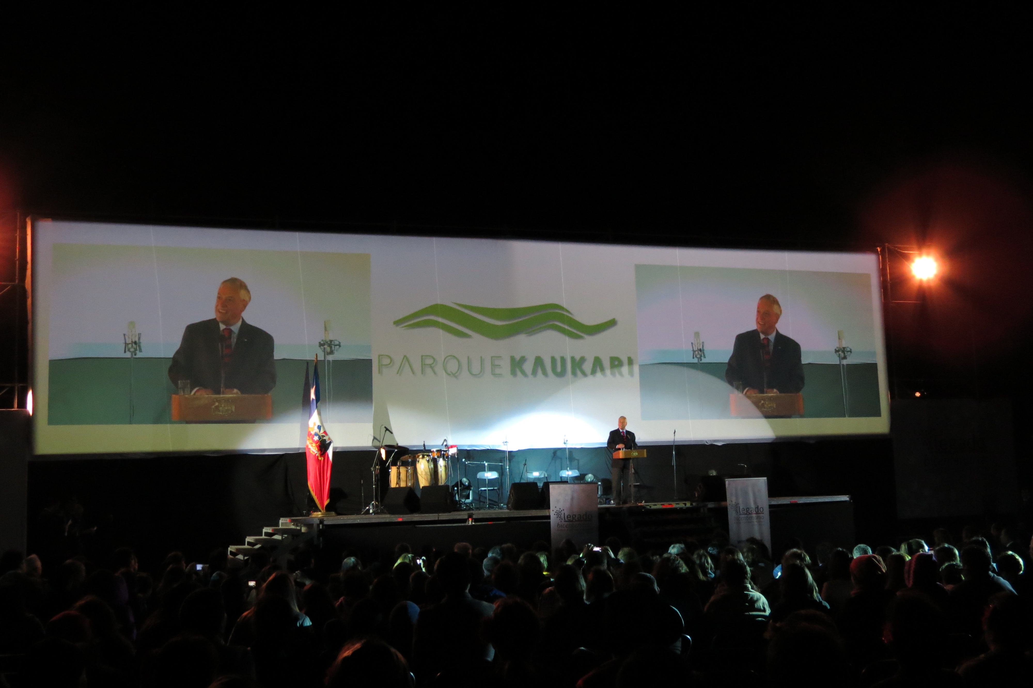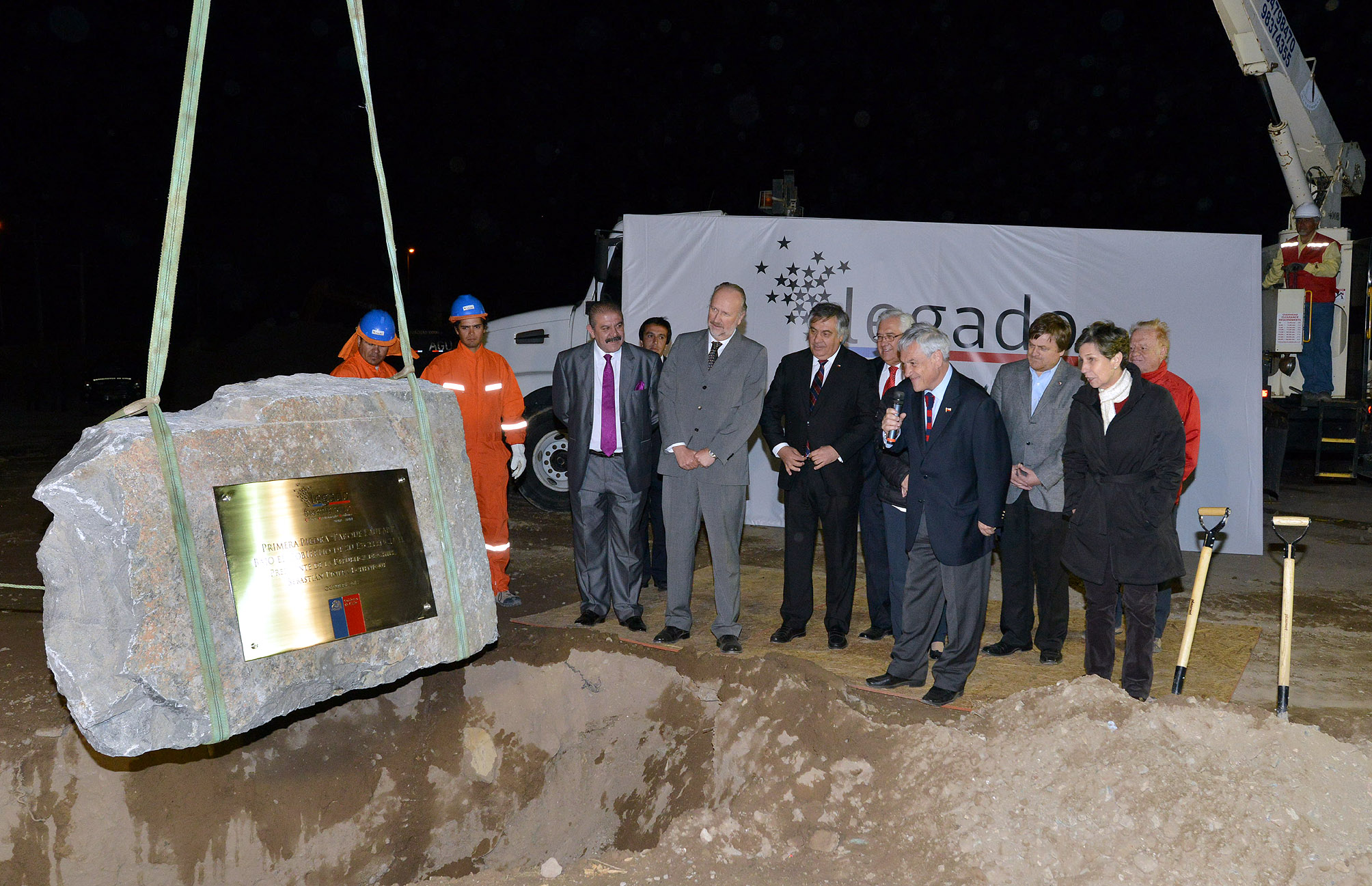 El Presidente de la República, Sebastián Piñera, acompañado de su señora, Cecilia Morel, encabezó, la noche del sábado 12 de octubre, la ceremonia de colocación de la primera piedra del Parque Kaukari, en Copiapó.