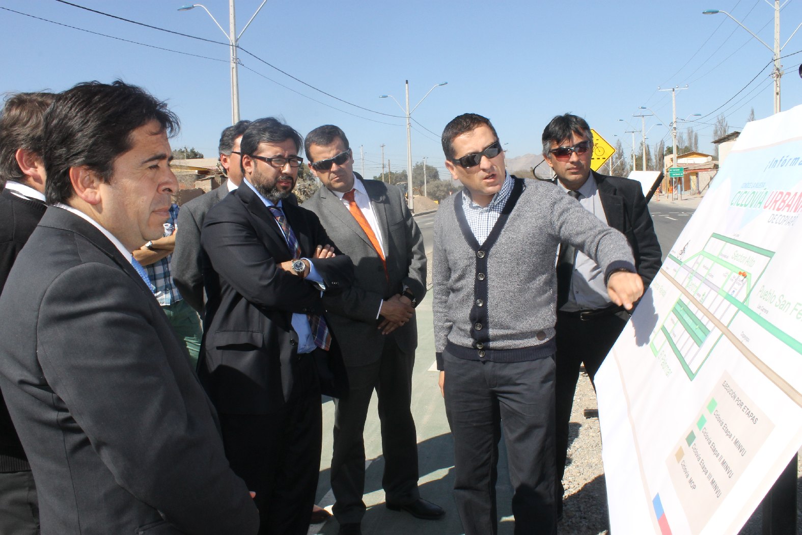 El Subsecretario de Vivienda y Urbanismo, Jaime Romero, junto al Intendente de Atacama, Miguel Vargas, Seremi Minvu, Rodrigo Ocaranza, director Serviu (P y T), Patricio Villarroel y Seremi MOP, Juan Carlos Guirao, visitaron un tramo del proyecto de Gobierno "Ciclovias Urbanas", ejecutado en la comuna de Copiapó. El tramo recorrido corresponde al ubicado en Avenida Circunvalación con calle Capitán Trisano, lugar de alto tráfico vehicular, que ahora se complementa con una ciclovia que aporta a la utilización de una nueva forma de desplazamiento seguro y sustentable para la comunidad que opta por este medio de transporte, motivando además a la población a la práctica de estilos de vida saludables y amables con el medio ambiente, beneficiando directamente a más de 100 mil personas.