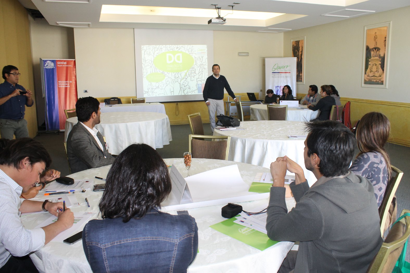 Conversar y escuchar a los representantes de los municipios de Vallenar, Copiapó y Chañaral, fue el principal objetivo de los Diálogos Participativos que implementó el MINVU en una jornada de trabajo con los distintos equipos que participan actualmente del Programa de Recuperación de Barrios "Quiero mi Barrio" en Atacama.