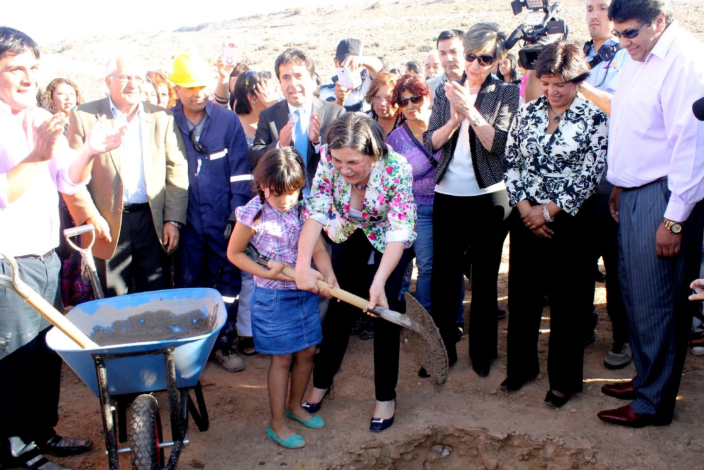 155 familias de Vallenar iniciaron hoy el proceso de construcción de sus viviendas, cuya primera piedra fue puesta por la Ministra de Vivienda y Urbanismo (Minvu), Paulina Saball, luego de siete años en que no se construían viviendas en la comuna.